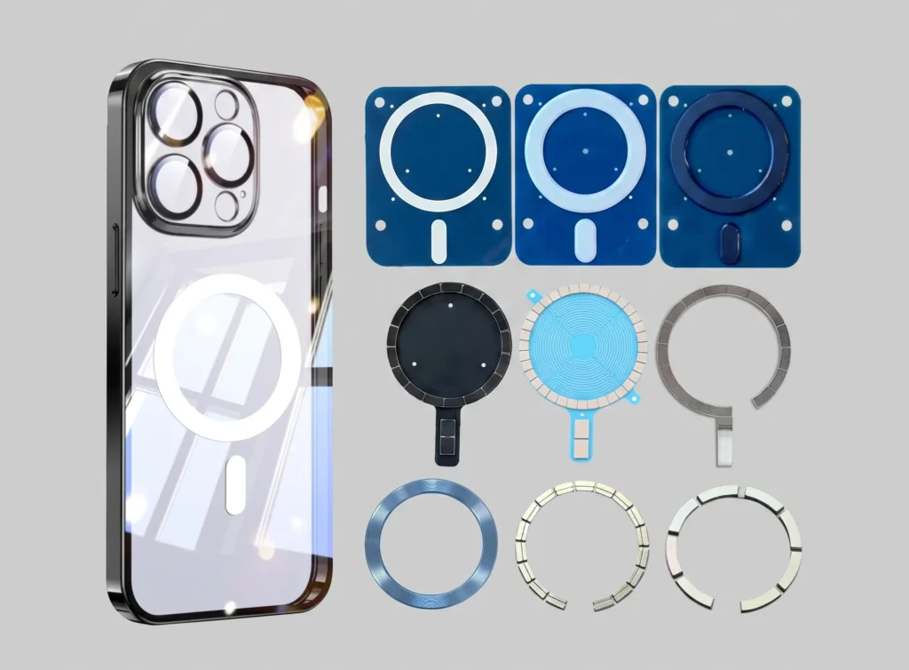 For MagSafe compatible cases: N52 grade neodymium magnets, ring diameter matching Apple’s spec, evenly distributed around the ring.
